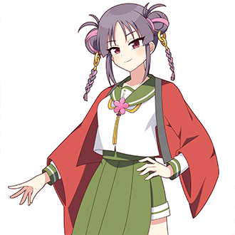 お団子とツインテールリングに付けているピンクのエクステ、ロングスカートとショートパンツという個性的な見た目が特徴的。